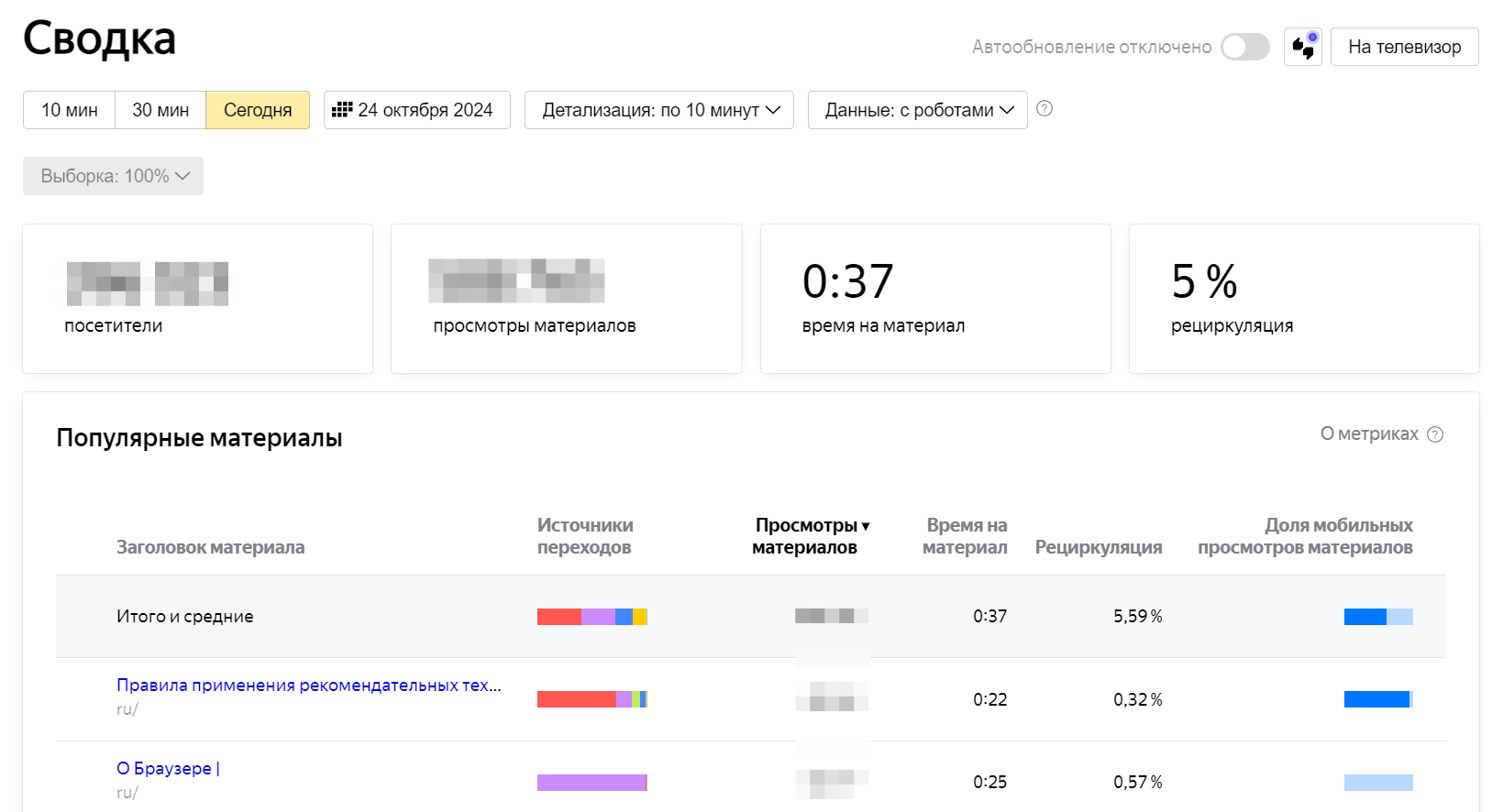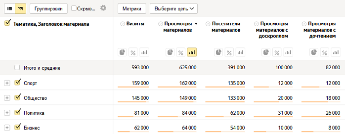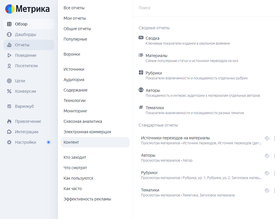 В Метрике c 1 июля 2019 года существуют специальные отчеты для контентных проектов и медиа изданий.